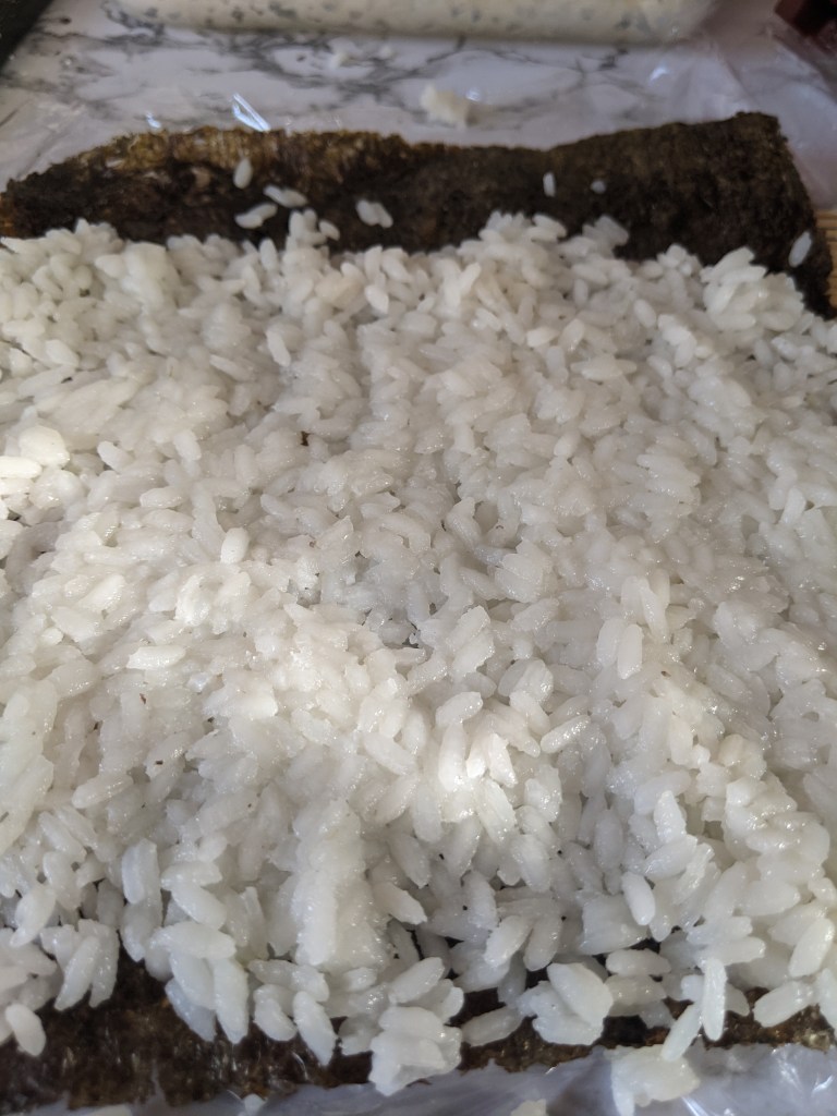Making the rice is an important step, because sushi rice isn’t just a boil and serve type of rice! You’ll want to make sure you actually buy sushi rice and follow the directions afterwards to elevate the flavour. Only a bit of salt, sugar and rice wine vinegar needed! I enjoy the brand below, but also found a giant bag of sushi rice at T&T Supermarket (their own brand). Calrose rice works ok if you can’t find sushi rice. Make sure when you’re putting the rice onto the seaweed sheet, you have a small bowl of water near by, so you can dip your fingers in it to avoid all the rice sticking to your hands!