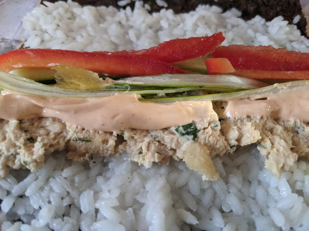 You also need the seaweed! Otherwise known as nori sheets. Eating seaweed is recommended for any diet, as it is filled with so many needed nutrients! It’s got iodine, tyrosine, small amounts of vitamins A, C, E and K, along with folate, zinc, sodium, calcium and magnesium (source) as well as being high in antioxidants and fibre! You can find them in most grocery stores, but when it doubt, hit up your local Asian shops!