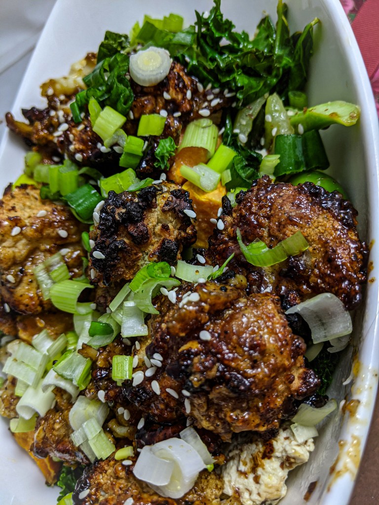 The cauliwings are the star of this dish, but I’ll be nice and give you the recipe for the entire bowl, because what a wonderful combination of flavours to enjoy!! Where you one of those vegans who never really ate cauliflower before? I definitely am. I usually only ate cauliflower plain in salads. I think I made cauliflower “steaks” once before but I don’t think they were anything to rave about haha.