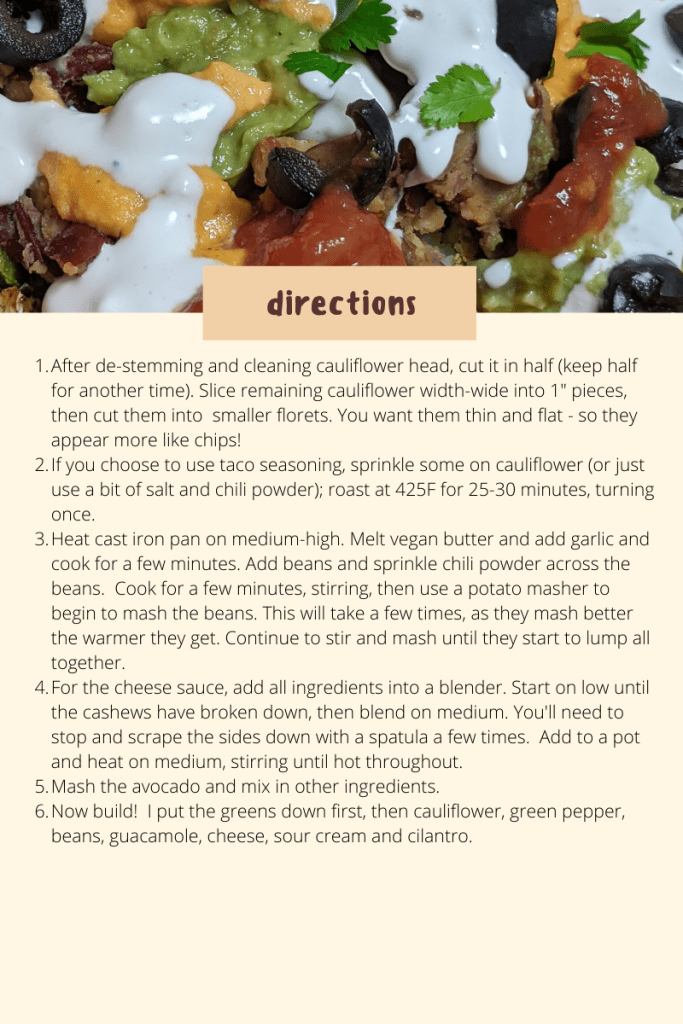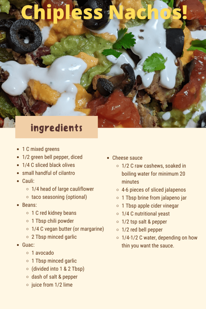 The only thing separating this dish from my other nacho dishes that I’ve shared is the fact that I left out the tortilla chips! I also usually use black beans when I make my refried beans, but decided to mix it up and use red kidney beans. kidney beans are technically healthier than black beans says they do contain more protein fiber iron calcium and other nutritional components. I just prefer the taste of black beans over kidney beans however I had a couple cans in the pantry so decided to go with that. I use the same recipe and for the record it does contain vegan butter so also not WFPB, but we can all be perfect can we? Lol