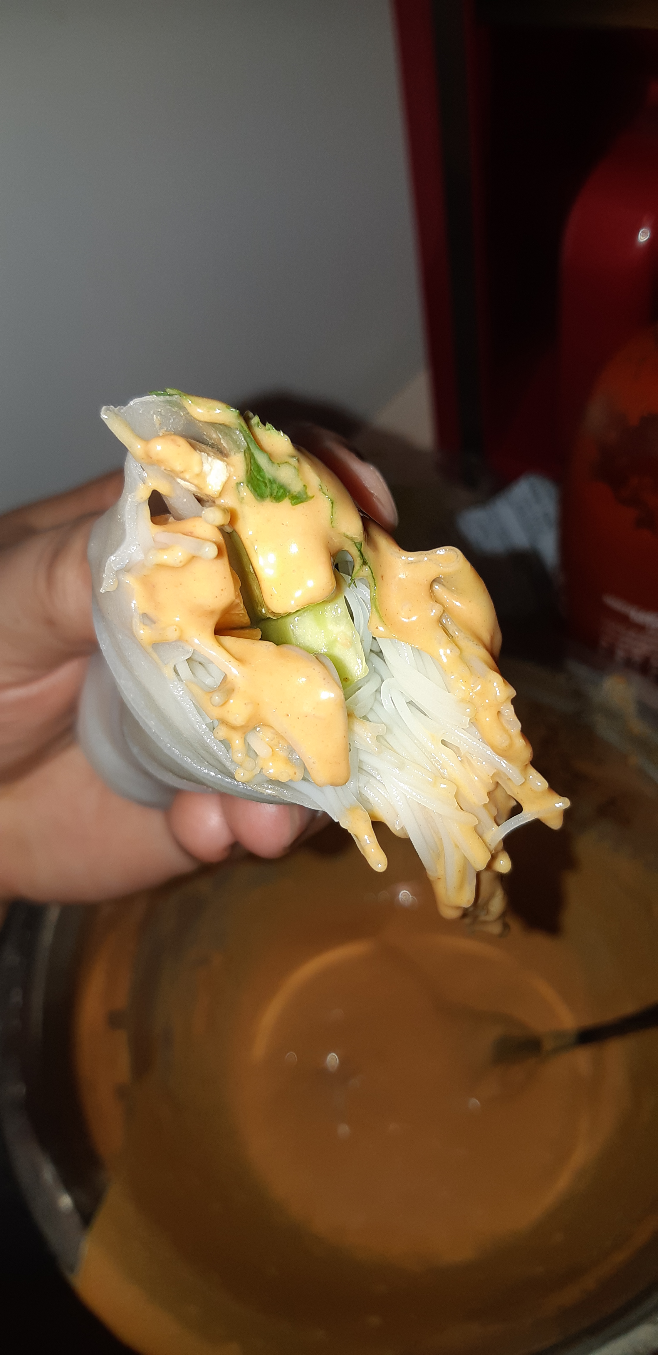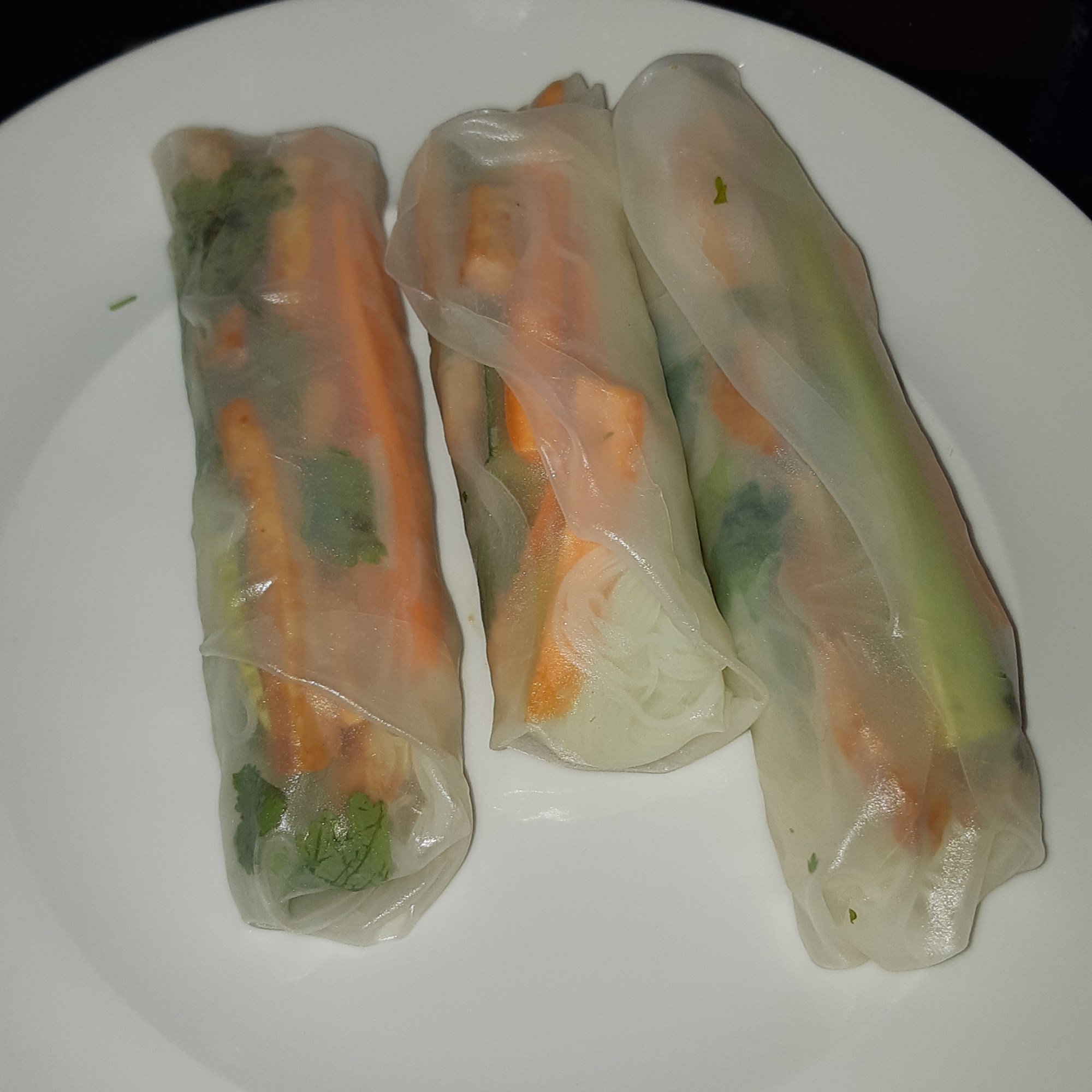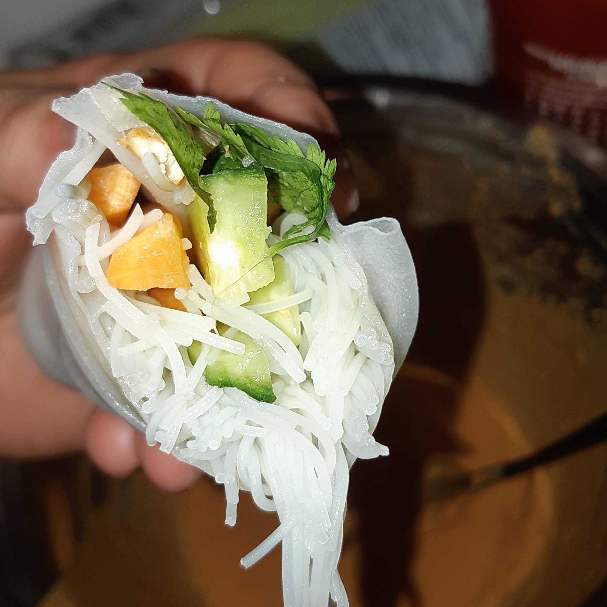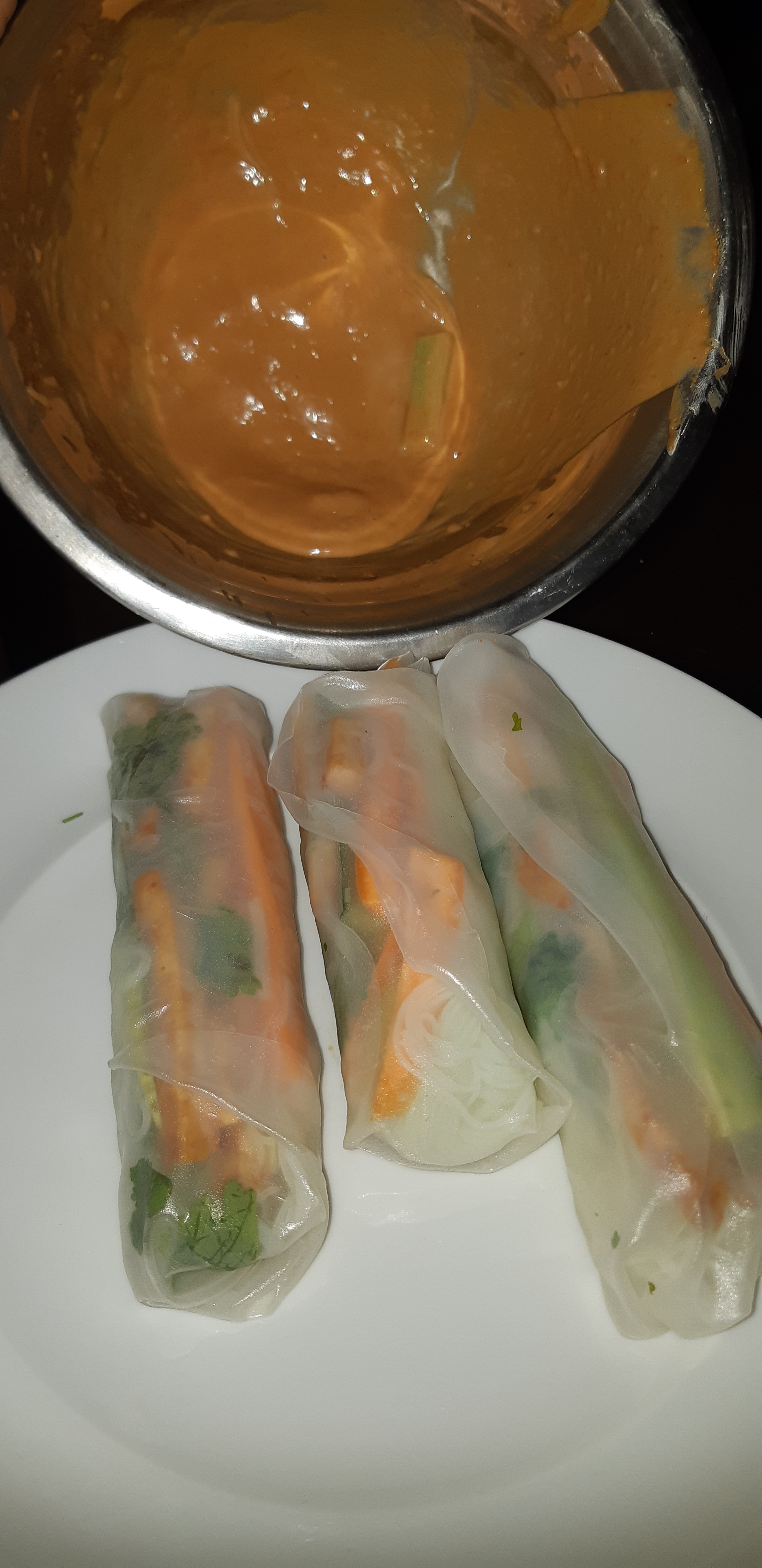 Typically you’d think a page that’s kind of focusing on the not-so healthy, vegan munchie foods would have deep fried spring rolls. Don’t get me wrong, I would eat those kind every day, but once I discovered the fresh ones and how amazing they are dipped in…….you guessed it, peanut sauce!! Spring rolls are typically an appetizer, but if you eat a bunch, they totally could qualify as a whole meal!! Enjoy!